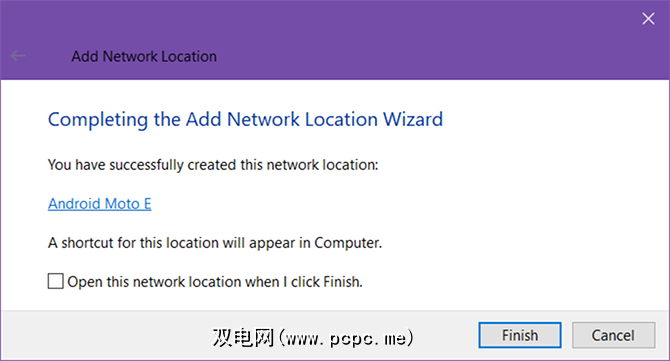 为服务器指定一个昵称,这样您就不必摆弄IP地址,也可以避免混淆。这是将显示在文件资源管理器中的名称。完成后,单击下一步,然后单击完成。