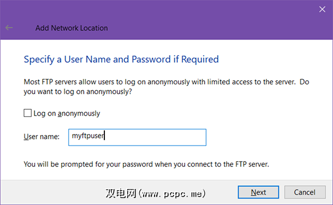 请务必在开头添加 ftp:// 。向Windows指示您要使用FTP协议。
