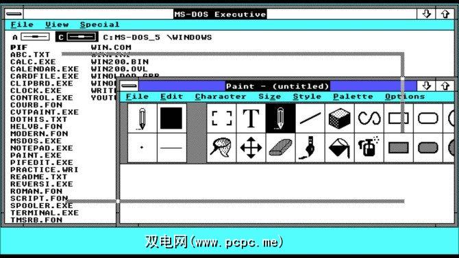 Windows 1.0还会自动调整打开的窗口的大小以适应可用空间。此版本不允许您重叠窗口,但是我们可以将此早期功能追溯到现代Windows版本中方便的窗口捕捉。