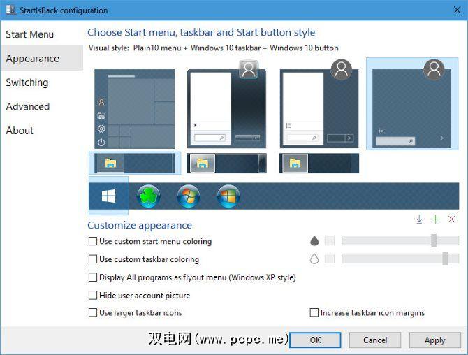 StartIsBack是干净的“开始"菜单替代,这是一个不错的选择对于来自Classic Shell的用户。它为“开始"菜单和任务栏图标提供了几种外观。其中包括“开始"菜单和任务栏按钮的Windows 10和Windows 7样式,以及一些不同的“开始"按钮外观。