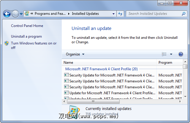 如果您注意到这一点,则可以从Windows控制面板中卸载更新。打开标准的``卸载或更改程序''窗口,其中列出了所有已安装的应用程序。在边栏中,单击“查看已安装的更新"。找到所需的更新,以与其他程序一样的方式删除并卸载它。