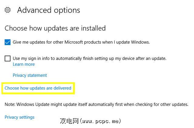 转到 Windows更新部分,然后选择高级选项,然后单击选择更新方式。