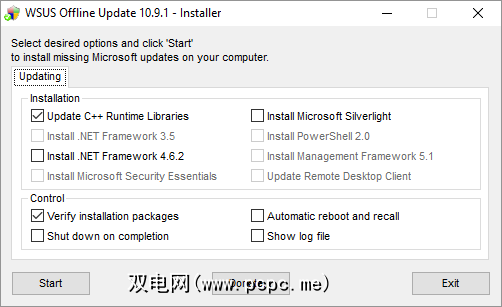 要安装下载的更新,请打开 UpdateInstaller.exe (在目标PC上的 wsusoffline> client 文件夹中找到它),并检查安装下的相关选项。