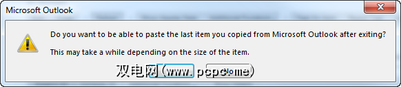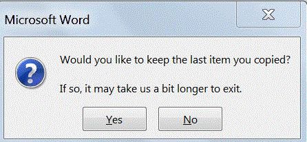 作为示例,请考虑将大量文本复制到后弹出的对话框。您在Microsoft Office应用中的剪贴板,然后尝试关闭。这是旧版Office中的框说明: