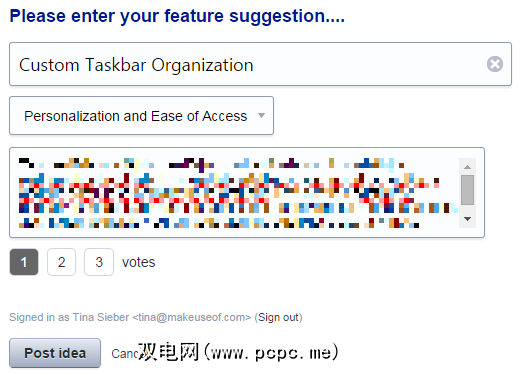 如果在检查了潜在匹配项列表后您认为建议是唯一的,请点击发布新想法…按钮(请参见上面的屏幕截图)继续提交您的建议。选择您的想法的类别和描述,确定要提交的投票数,然后点击发布想法。