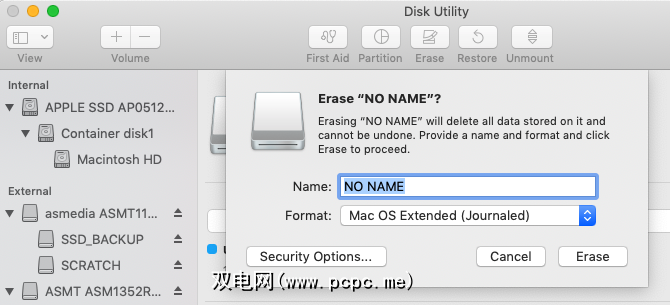 有关如何在macOS上格式化USB驱动器的信息,请参见