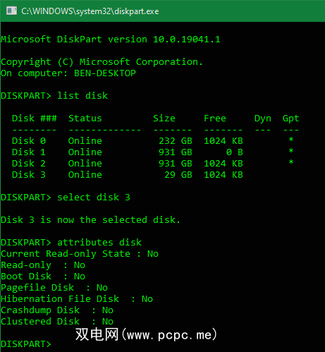 要删除此磁盘,请输入属性磁盘清除为只读。然后,Windows将显示一条消息,指示已成功删除属性。输入 exit 命令退出窗口。