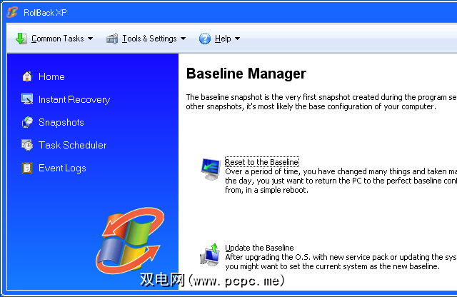 安装后,RollBack XP将建立基准快照。在安装Service Pack或其他重要更新后,通过工具和设置或单击 CTRL + L 访问Baseline Manager来更新基线。