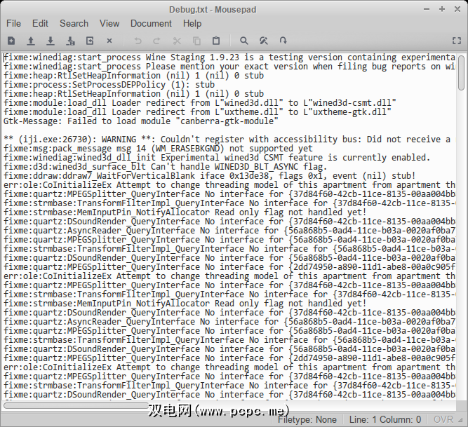 如果您要运行的应用程序不在在Wine应用程序数据库中,您仍然可以四处寻找问题的答案。例如,您可以看一下Wine产生的错误,如下所示: