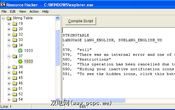 首先,打开位于以下位置的explorer.exe文件: C:WINDOWSexplorer.exe 。现在,您应该能够在侧面看到由“字符串表"目录中的数字组成的不同文件夹的列表。我们正在寻找的是 37文件夹,而另一个子目录选项是 1033 。在该文件内有多行文本-我们要更改“开始"文本。您可以将其更改为所需的任何值,但是请不要超过20个字符,因为此后选项卡会变得太大。另外,请确保不要更改其他行上的任何文本。