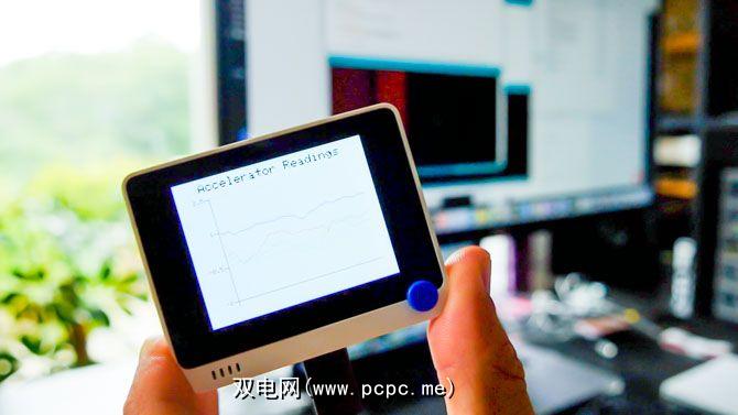 我的第一次尝试涉及用于读取加速度计值并在屏幕上绘制结果的示例代码。非常酷,它确实展示了该设备的数据记录项目功能。您还将找到用于将值写入SD卡的代码。
