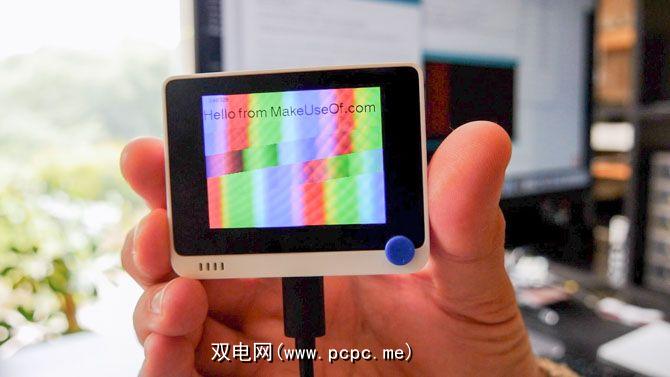 用屏幕左侧的开关打开设备的电源,然后您会立即受到一个小型Flappy-bird stype复古游戏的欢迎(如果需要,可以在此处找到相应的代码)。