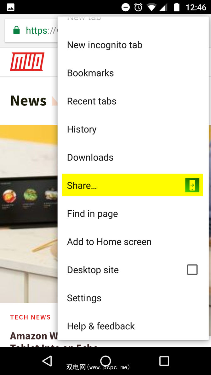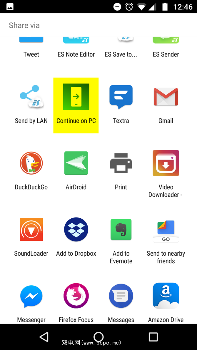 一旦安装了Microsoft Launcher应用,请访问网站并使用浏览器的默认设置共享该网站。 共享功能。选择在PC上继续选项。