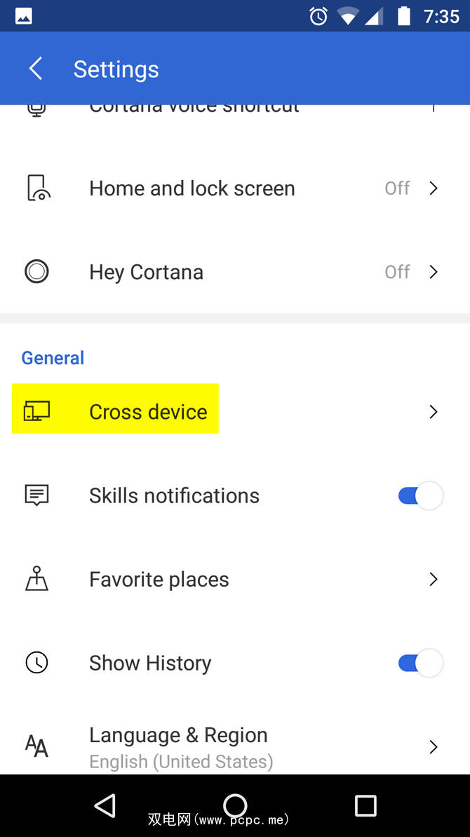 首先,在手机上下载 Cortana ,该手机适用于Android和iOS设备。下载完应用程序后,转到其设置以访问跨设备选项。使用该应用程序之前,系统可能会提示您登录您的个人Microsoft帐户。