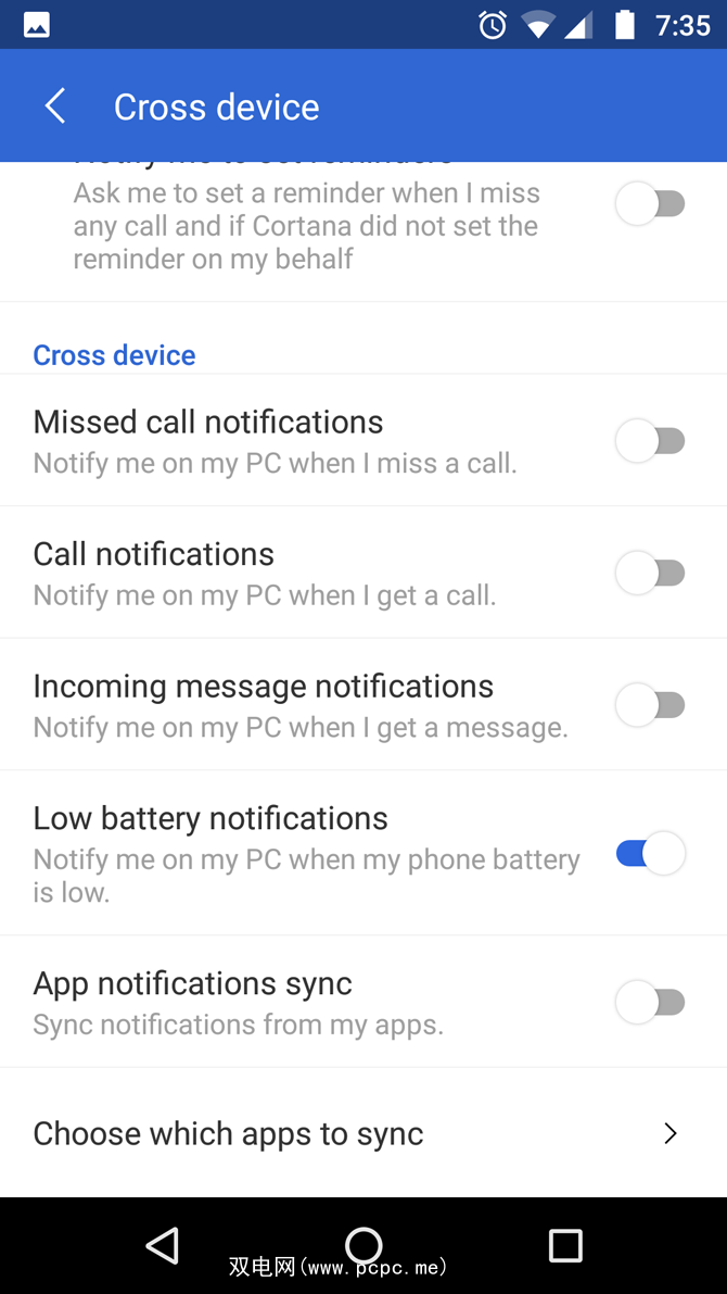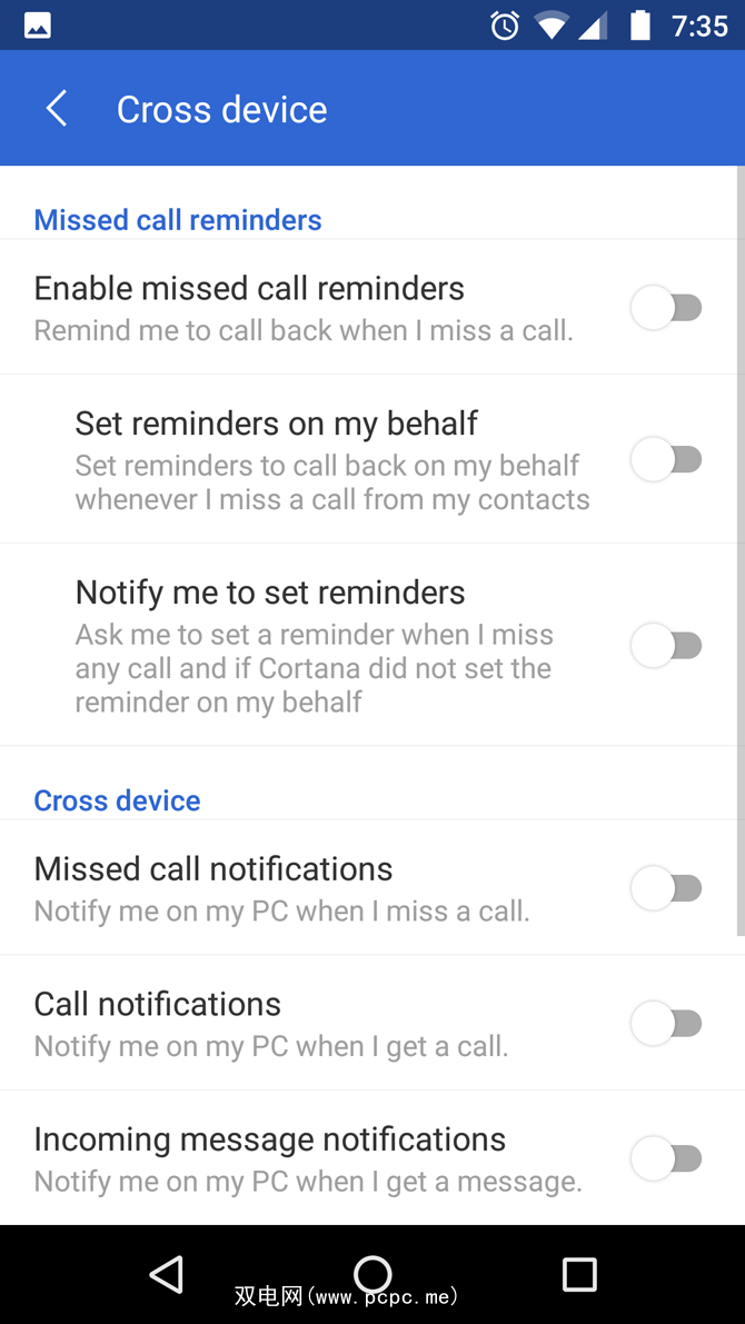 一旦找到“跨设备"选项,您将需要允许Cortana访问某些信息。以下是一些通知选项的快照: