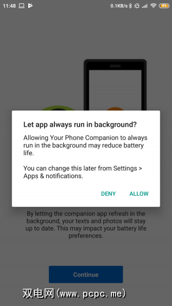 您的手机会问一个奇怪的问题:您是否希望该应用程序在后台运行?如果您允许,它会一直保持最新状态,但也会耗尽电池电量。点击拒绝或允许在此处做出决定。