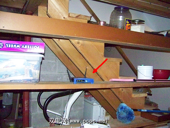 如果您喜欢将路由器放在地下室,这是一个不错的放置示例。该路由器放置在地下室中央的架子上,远离任何墙壁或窗户(窗户或其他反射性表面会偏转信号并引起干扰)。