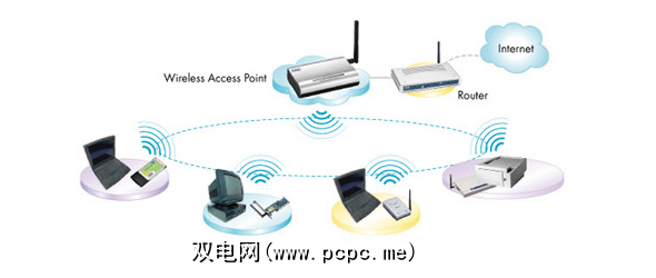 图片来源:无线接入点,无线自组织网络,通过Shutterstock的无线路由器,无线范围扩展器,无线网桥,通过Shutterstock的无线USB适配器,osde8info / flickr