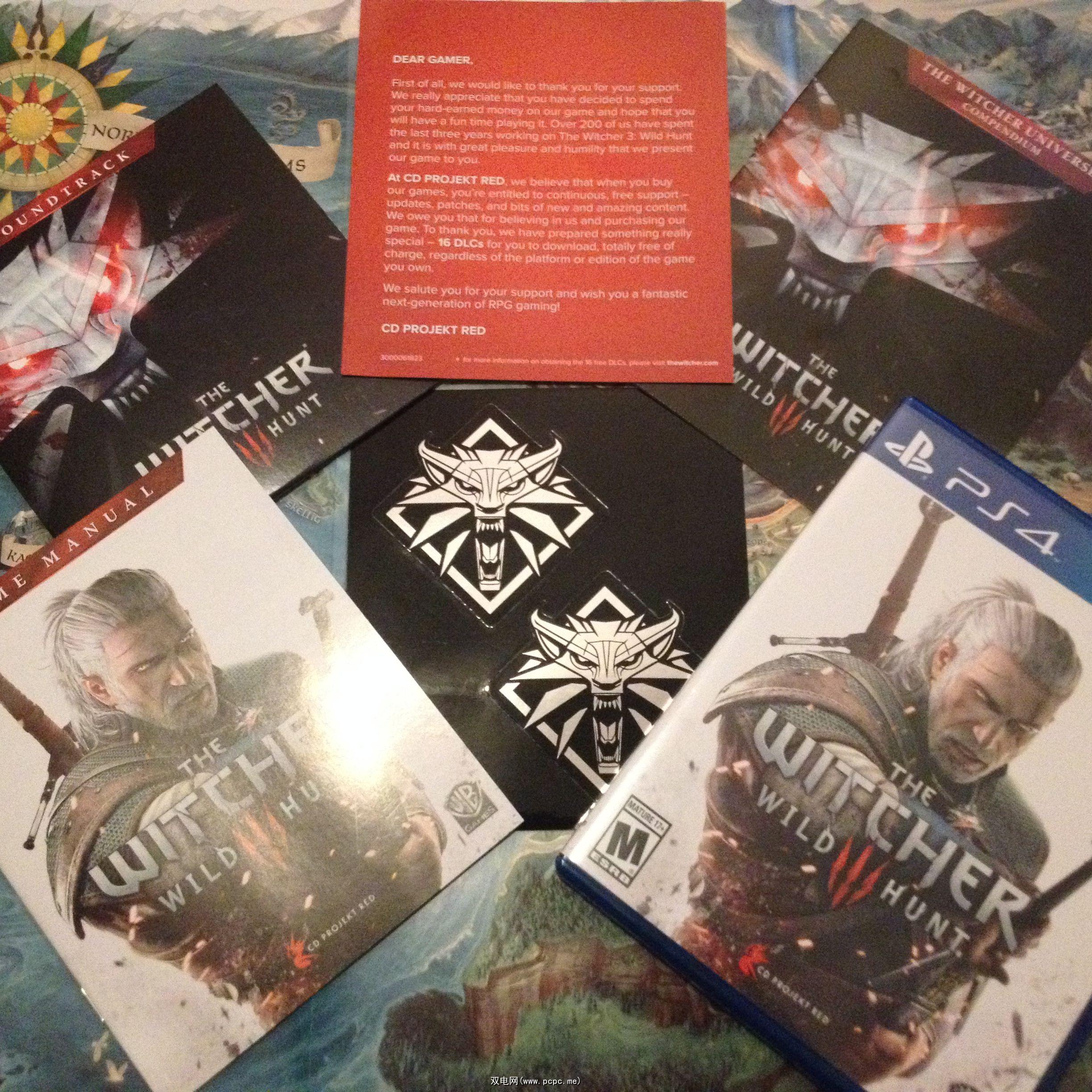 现在让我们来看一下 The Witcher 3 。该游戏的基本版本售价为60美元,并配有配乐盘,手册,地图,一些贴纸以及谢谢您。说真的我见过的“珍藏版"所包含的内容要少得多。这是我的同事Rachel Kaser的一些照片: