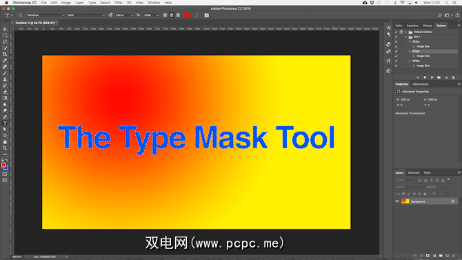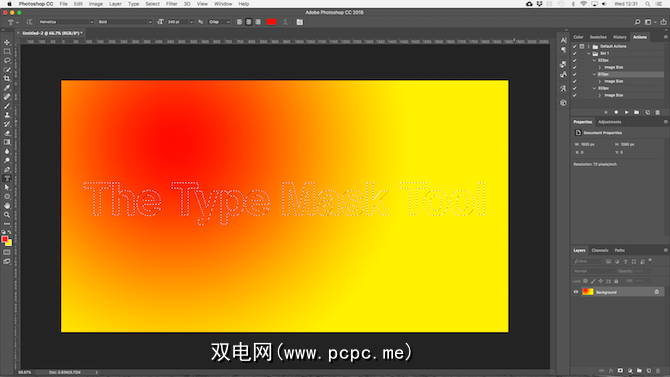 Photoshop的最后一个主要文本工具是 Horizontal Type Mask Tool 和 Vertical Type Mask Tool 。