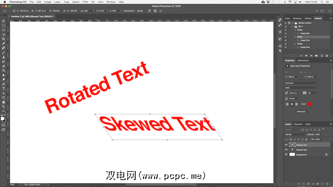 要旋转或倾斜文本,请选择文本图层,然后按 Ctrl + T 或 Cmd + T 打开免费变换工具。