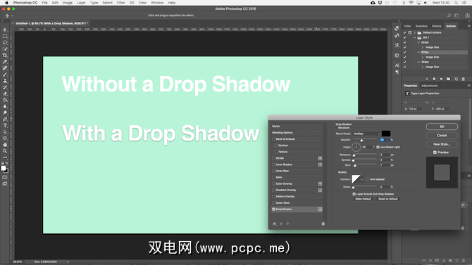 选择 Drop Shadow (降阴影)并调整包括不透明度,角度和距离。确保已选中预览按钮,以便您可以实时查看效果。完成后,单击确定。