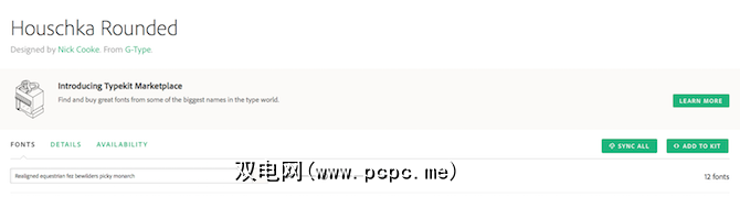 这将启动Adobe的Typekit网站。如果需要,请登录,然后浏览并选择要添加的任何字体。点击全部同步按钮,使该字体的所有样式在Photoshop中可用。另外,也可以仅同步所需的样式和粗细。