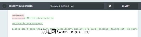 除非您使用Jekyll,否则发布和保存都很漂亮几乎是一回事:保存后,您的文本就会提交到GitHub存储库中。除非您是GitHub的付费用户并且选择了私有存储库,否则这意味着每个人现在都可以看到您的文本。第一次提交看起来是这样的: