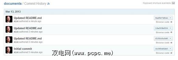 再进行一些快速的擦写之后,GitHub的存储库的提交历史看起来像这样:
