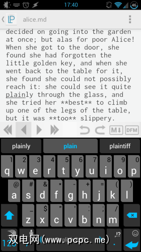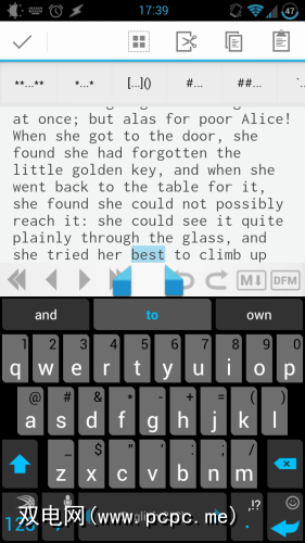 Markdown很简单,但是创建时要考虑到成熟的硬件键盘。尝试在Android键盘上键入一个方括号,以了解我的意思:这通常涉及按住键,并且对于某些键盘,您实际上必须翻转至键盘上的其他页面,例如数字布局。 LightPaper通过提供一个简单的Markdown工具栏来解决此问题: