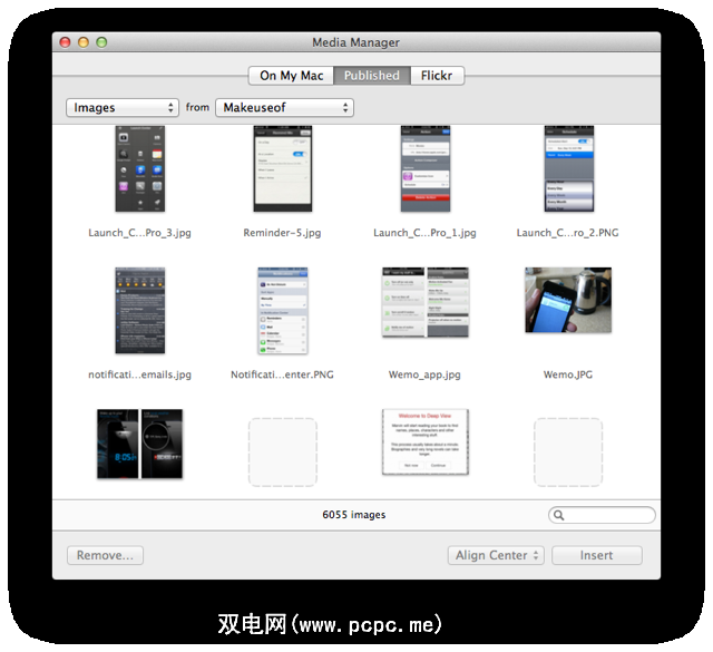您还可以添加要与文字一起发布的图像和视频。 。将图像文件从Finder拖放到草稿中的所需位置,或使用 Media Manager 从Flickr帐户中选择并添加图像,以前发布的图像和其他文件。管理器快速且可搜索,您可以将媒体左,右或居中对齐。
