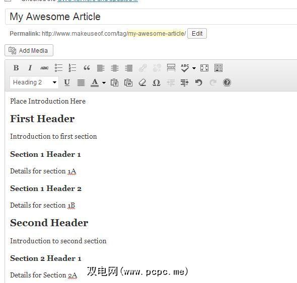 如果按照上述步骤进行操作,则现在已创建了轮廓,并在其中放入了图片位置,剩下的就是内容。您已经训练自己尽快打字。您已完成所有研究。现在是该过程中最神奇的部分了-写作。