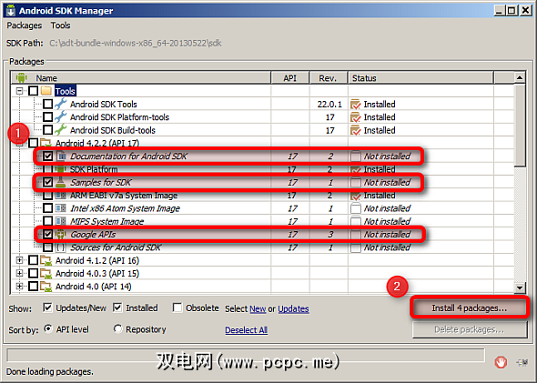 您可能会注意到,您还可以为旧版Android安装材料。如果需要,请多加注意,但这会增加您的下载时间并占用硬盘空间。接下来,单击屏幕右下角的“安装软件包"。