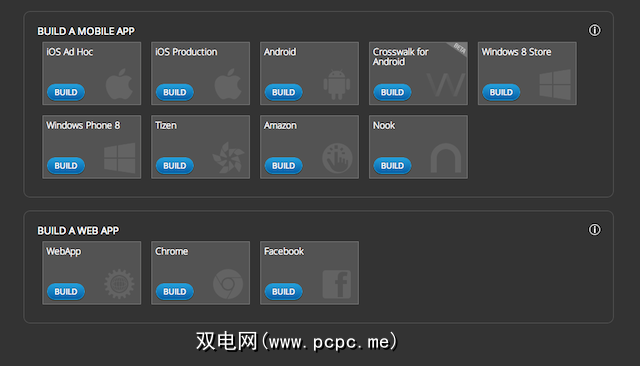 您可以定位Android,Crosswalk for Android,iOS,Windows 8,Windows Phone,Tizen,Amazon和Nook。令人失望的是,您无法为Blackberry 10构建应用程序。我发现这绝对是奇怪的。 Blackberry 10仍然非常活跃,如果您有任何时间在机场或火车站的头等舱休息室度过,您将发现Blackberry Q10并不缺。实际上,大多数Blackberry 10应用程序都是完全使用Web技术构建的。将BlackBerry 10功能添加到XDK可能是微不足道的。