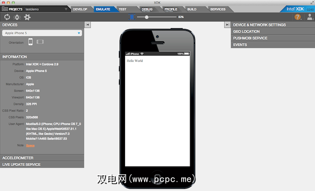 一旦您有了一些代码,您将要了解它在不同平台上的外观。 XDK允许您以多种分辨率和尺寸运行代码,包括Apple iPhone,Google Nexus 7平板电脑和诺基亚Lumia 920。