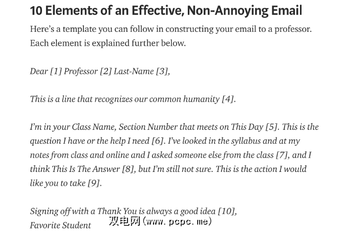 10个错误中的每个错误都包括对要遵循的正确协议的简短记录。如果您需要告诉其他人遵守其中一项规则,则该网站的每一点都有便捷的链接。他们的示例方法似乎有些激进或无礼,因此请将其调整为您想要与接收者一起使用的语气。