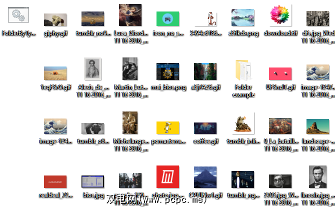 @echo offrem For each file in your folderfor %%a in (".\*") do (rem check if the file has an extension and if it is not our scriptif "%%~xa" NEQ "" if "%%~dpxa" NEQ "%~dpx0" (rem check if extension folder exists, if not it is createdif not exist "%%~xa" mkdir "%%~xa"rem Move the file to directorymove "%%a" "%%~dpa%%~xa\"))以下是我的台式机示例,其中包含大量的图像文件。