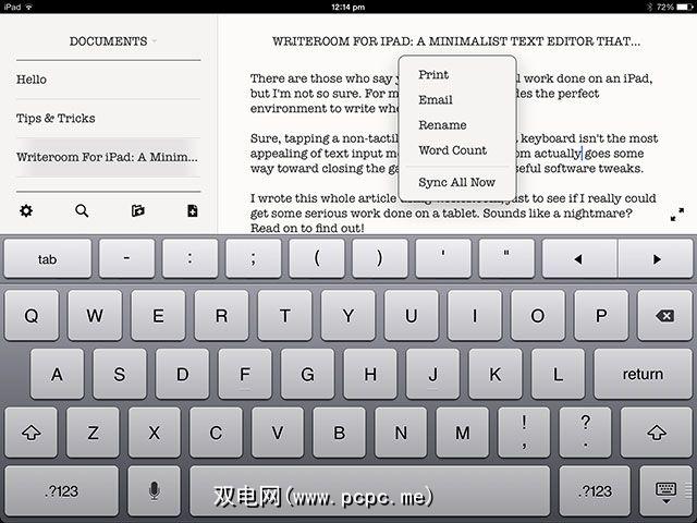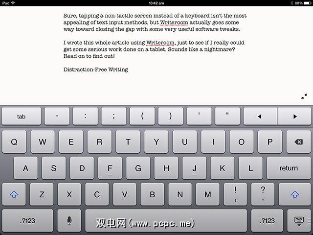 我使用WriteRoom撰写了整篇文章,只是为了看看我是否真的可以在平板电脑上完成一些严肃的工作。事实证明我可以。