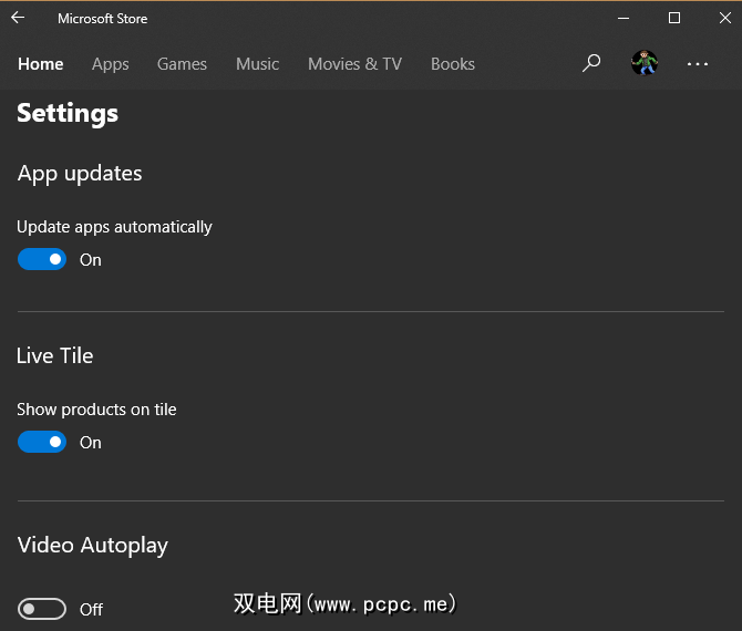 键入 store 进入“开始"菜单,然后打开 Microsoft Store 条目。在这里,点击右上角的三点式 Menu 图标,然后选择 Settings 。在“设置"菜单中,将自动更新应用滑块切换到关闭。