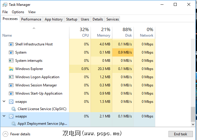 如果您曾经浏览过任务管理器中正在运行的进程列表,则可能会遇到名为 WSAPPX 的条目。值得注意的原因有两个:其奇怪的名称会引起怀疑,并且经常占用大量CPU和磁盘资源。