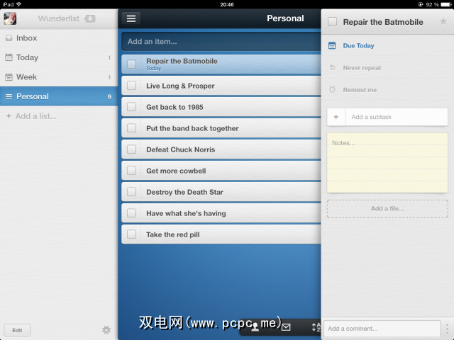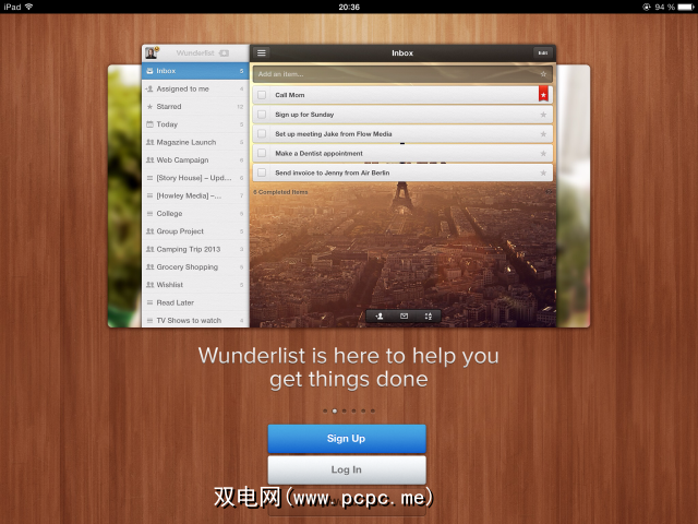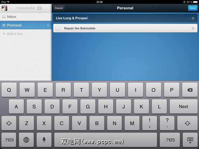 我今天将看看iPad版本,但Wunderlist也可用于iPhone。 ,如下面的照片所示。哦,它也可以在Android,Mac,Windows,Kindle和Web界面上使用。