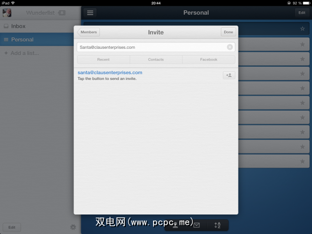 如果您的任何iOS联系人都安装了Wunderlist(如果没有,则应该向他们显示这篇文章),那么您可以与他们共享笔记本。如果您在左侧查看,则会看到类别,例如“个人"(也可以创建其他类别)。然后可以将这些类别(或笔记本)与其他Wunderlist用户共享。不过请务必小心,因为如果您授予访问权限,则用户可以创建,修改或删除该类别/笔记本中的项目,直到您撤消访问权限为止。