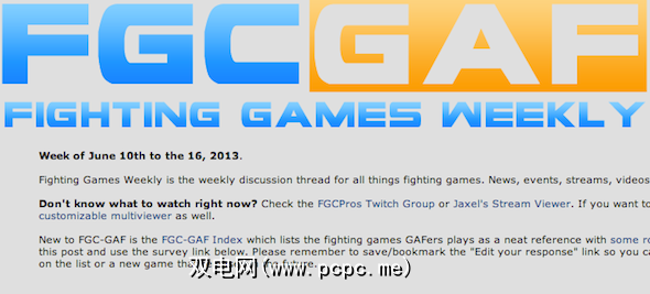 每个星期都有一个名为“格斗游戏周刊"的主题。该线程跟踪格斗游戏场景中最大的事件。如果您想知道在接下来的一周中何时何地发生最大的事件,那么该线程就是您要去的地方。值得庆幸的是,Neogaf的主持人非常容易,因为他们每周都会将该线程固定在顶部,因此您要做的就是跳到游戏论坛上,该线程将为您服务。