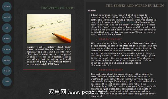 写作提示是一个棒的tumblr博客,任何希望一点灵感。该博客由一位九年级老师经营,积压了大量提示,因此,如果您感到受阻,那么这里是寻找灵感的好地方。除了跟上发布到博客的最新提示之外,您还可以查看一些可从侧栏访问的便捷列表:此处。