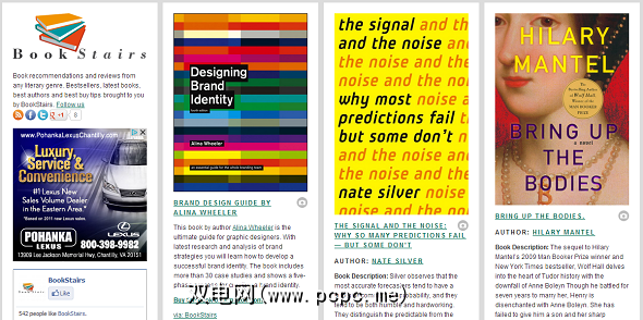 Bookstairs提供简短,活泼的书评,涵盖各种书籍,包括非小说,传记,旅行等。除了作为阅读书籍推荐的重要资源之外,该网站还可以通过链接到其亚马逊页面来轻松购买该书。