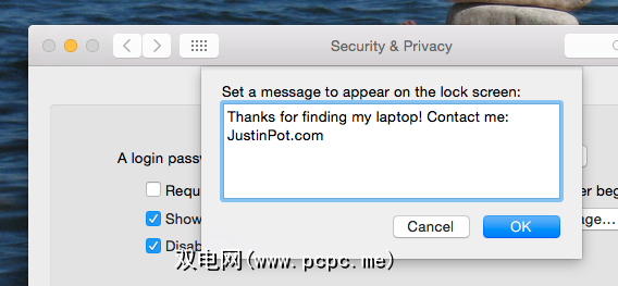 我个人想离开联系人信息,以防万一我丢失了笔记本电脑而有人要退还它。但是,您可能会给您的姐姐留下一个令人讨厌的消息,当您不在房间时,姐姐一直试图使用笔记本电脑,因此完全需要停止这样做。