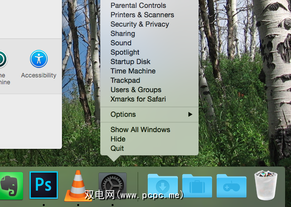 最后,这是一种快速跳转到任何“系统首选项"面板的快速方法。在扩展坞上,右键单击“首选项"图标-您会看到一个列表。