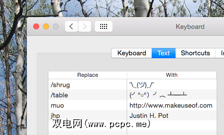 如果您发现相对较长的词组,并且经常输入,为它创建一个单词的快捷方式–在任何程序中键入该短语时,OS X都会为您转换它。这也是快速使用ASCII艺术的一种好方法-您可以看到,我为自己添加了一个“ / shrug"命令。