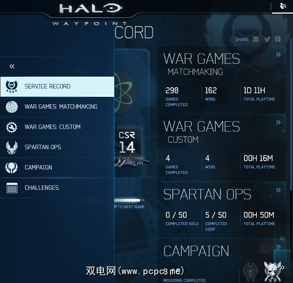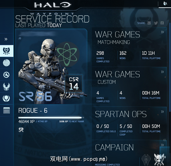 一旦玩了Halo 4,官方的Halo 4应用程序便会在SmartGlass中启动。下面是显示屏幕的方式,显示您的Spartan以及基本信息,例如您的级别和玩过多少游戏。