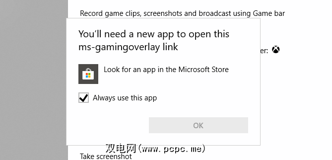 “您需要一个新应用来打开此ms-gamingoverlay链接"